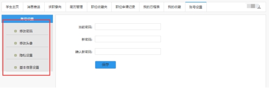 学生通过账号设置功能修改基本信息、修改密码等操作。如图: