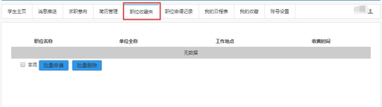 学生可以查看单位发布的职位信息,可进行批量申请和批量删除。如图: