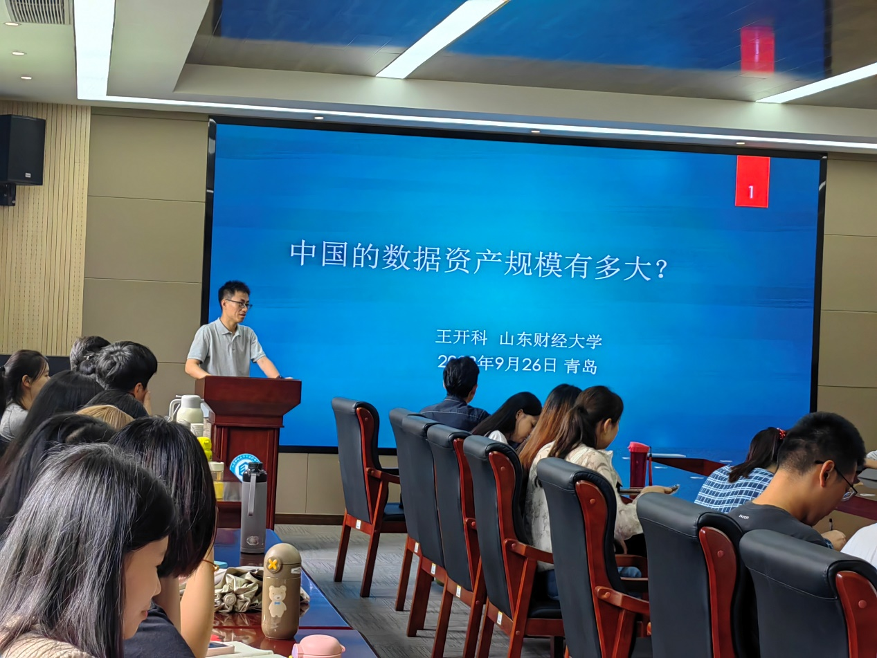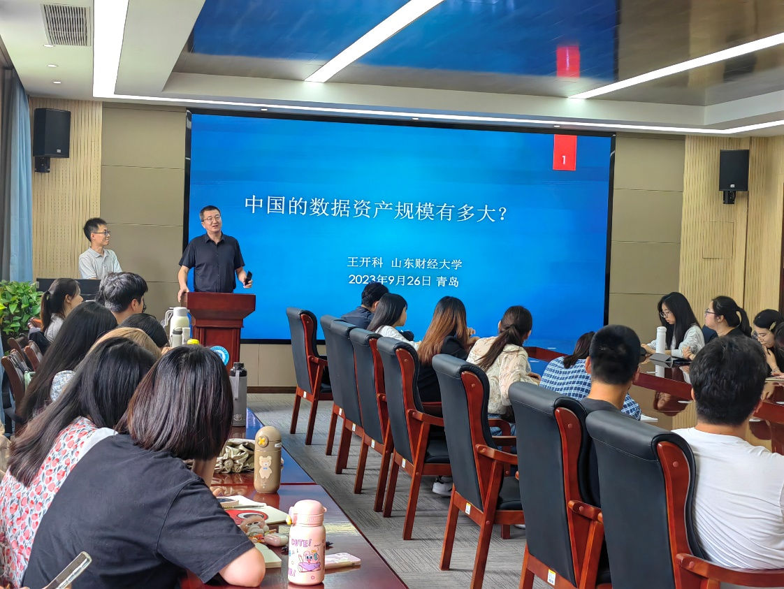 王院长以数字资产的背景与意义为切口,提出数据资产的重要性,同时点明我国数字资产面临的主要问题是数据资产的确权问题。会议中王院长结合现实生活中的例子简单介绍了一些数据资料的相关知识,比如数据产出的过程,数据要素的价值构成、资产分类及数据要素资本化核算的对象和范围。将统计学与经济学结合,将数据与生产劳动结合。同时王院长通过分享自己的研究过程,为同学们解决了一些学术上的问题。最后王院长根据研究提出了自己的一些想法,带给大家深刻的启示。