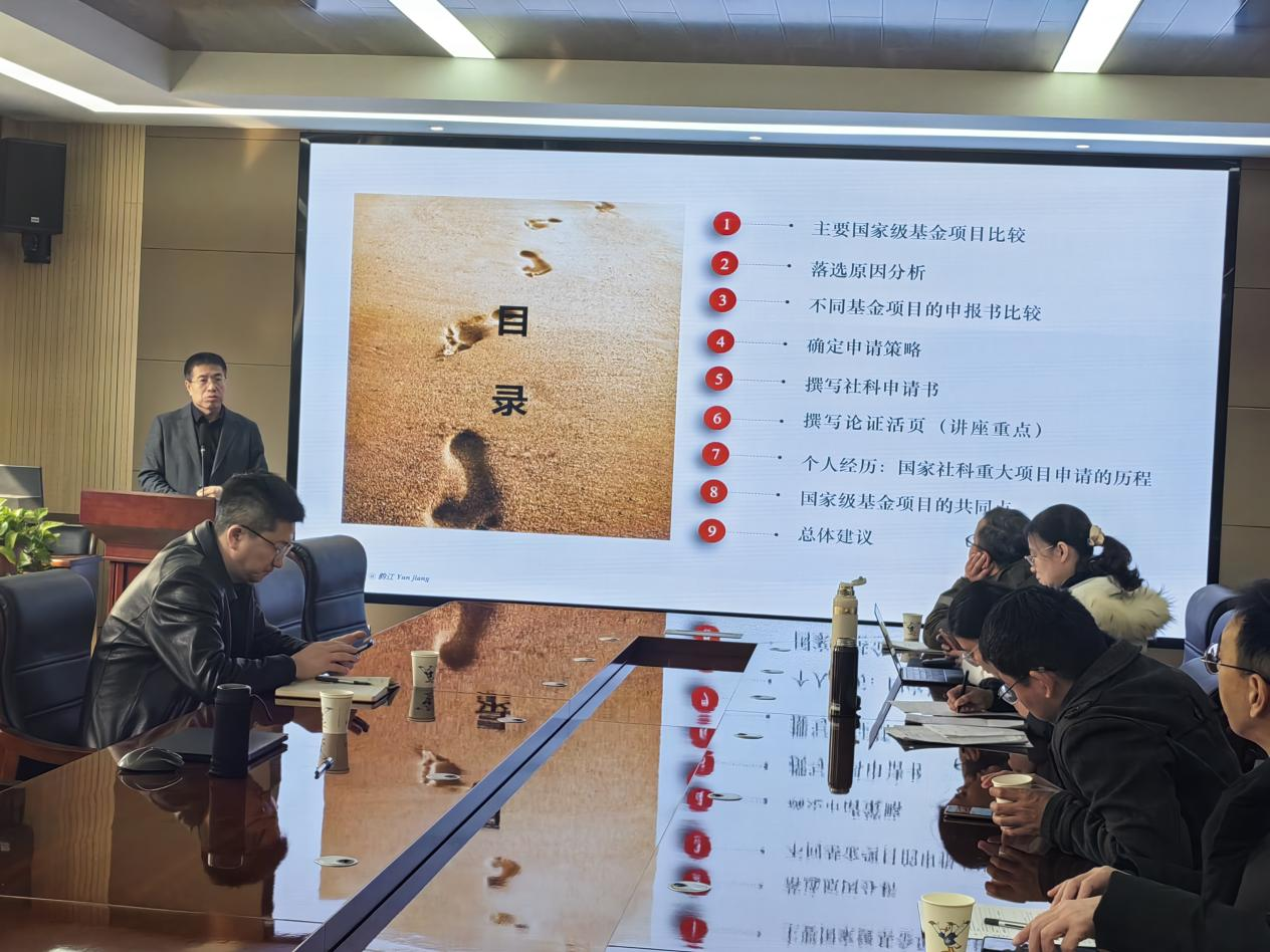 韵江教授分别围绕主要国家级基金项目比较、落选原因分析、不同基金项目的申报书比较、确定申请策略、撰写社科申请书、撰写论证活页、国家级基金项目的共同点以及总体建议等几个方面展开经验分享,并以申报某项国家级课题为例,重点讲解了如何撰写论证活页。讲座过后,韵江教授给与会老师们一一点评指导与交流,对于我院教师成功申报国家题有很大的帮助。