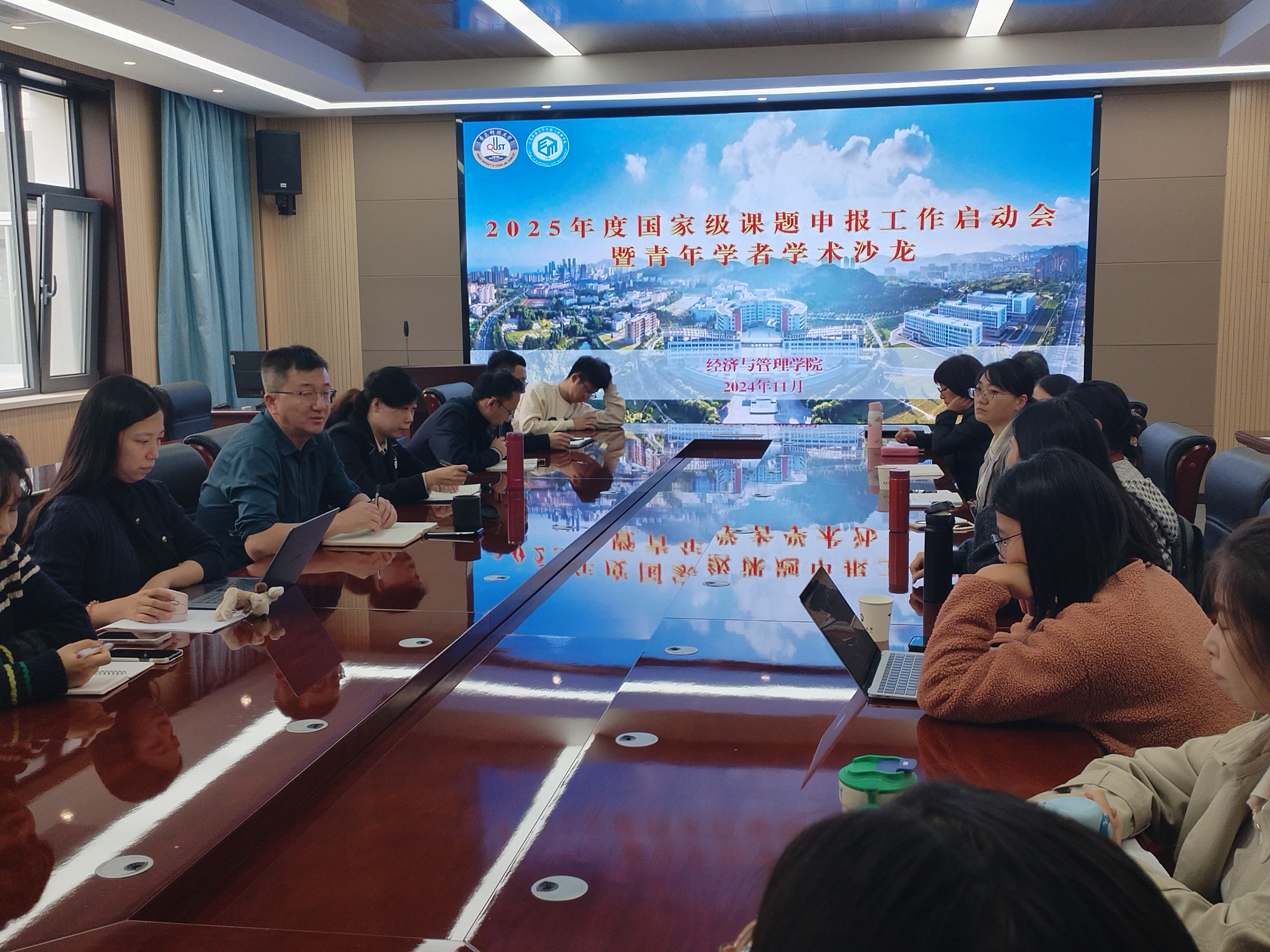 于313会议室召开2025年度国家级课题申报工作启动会,会议由吕承超院长主持,德州扑克俱乐部