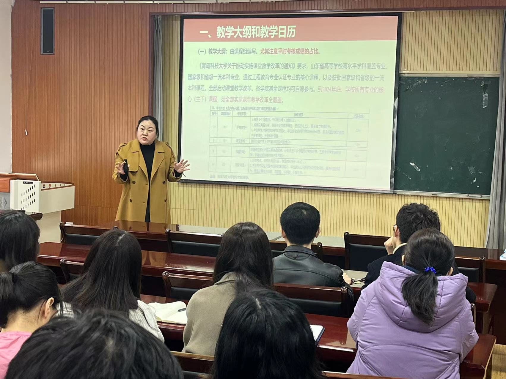 张玉老师从自身经验出发,从教学大纲和教学日历的准备、课堂教学的设计、教学过程的考核、教学效果的评价与材料归档等四个方面入手,详细介绍新时代课堂教学的新变化、新要求,并与老师们分享雨课堂、学习通等软件使用心得,深入浅出的解答老师们在教学过程中的疑惑。