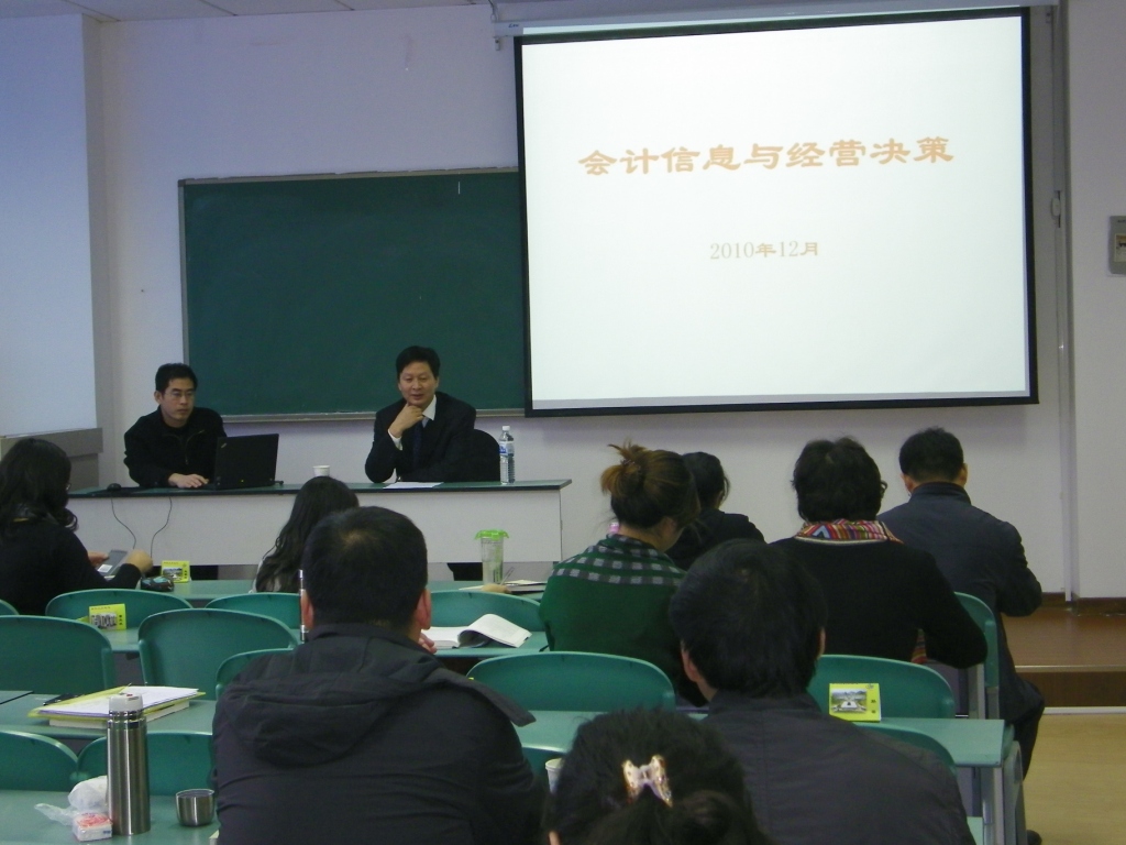 任教,历任青岛海信电器股份有限公司总会计师、副总经理、总经理、海信集团有限公司总裁助理、副总裁、青岛海信空调有限公司总经理,现任青岛海信空调有限公司副董事长、青岛海信电器股份有限公司董事。他给大家讲述了会计信息的特点、会计信息与企业经营的关系以及如何利用好会计信息实施企业经营决策,多年的教学经历加上丰富的实践实验,使汤总的讲座语言睿智、资料翔实、逻辑紧密,从而最大程度的拓宽了同学们的视角和思维。