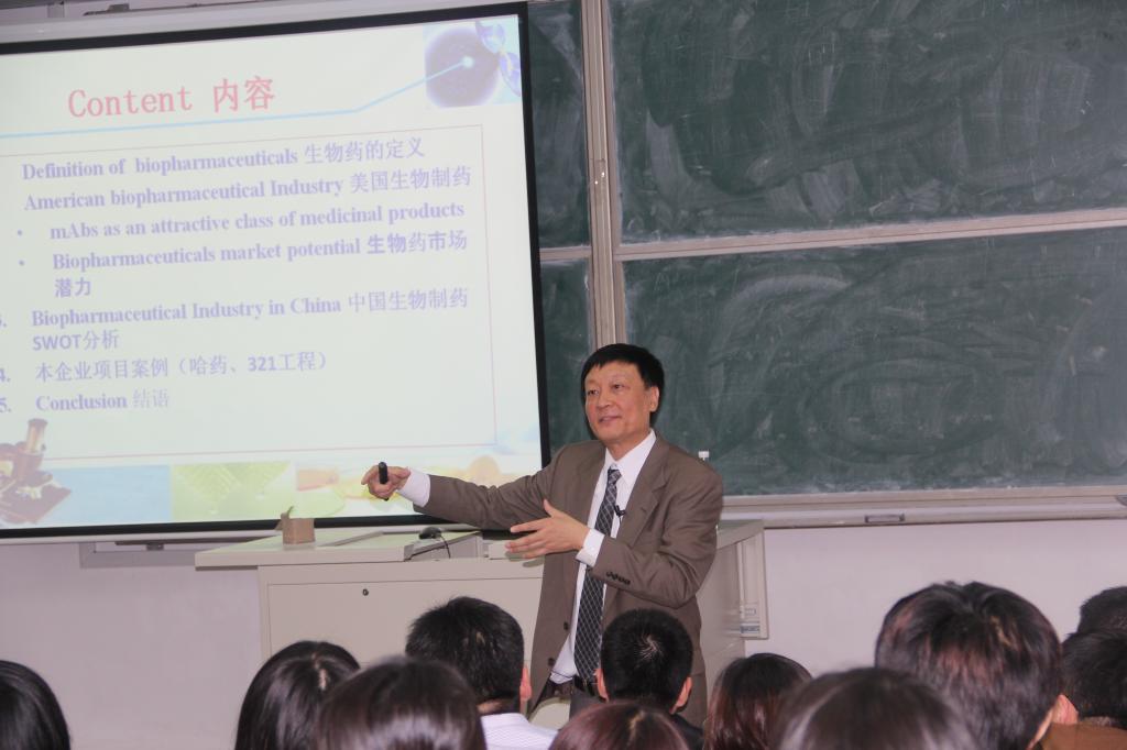 应青岛科技大学MBA教育中心邀请,5月18日,山东泰山学者曹杰教授为青岛科技大学2012级MBA全体学员及40多名加拿大来访学员带来题为“中国生物制药企业发展环境分析”的学术报告,报告会由袁晓莉教授主持。