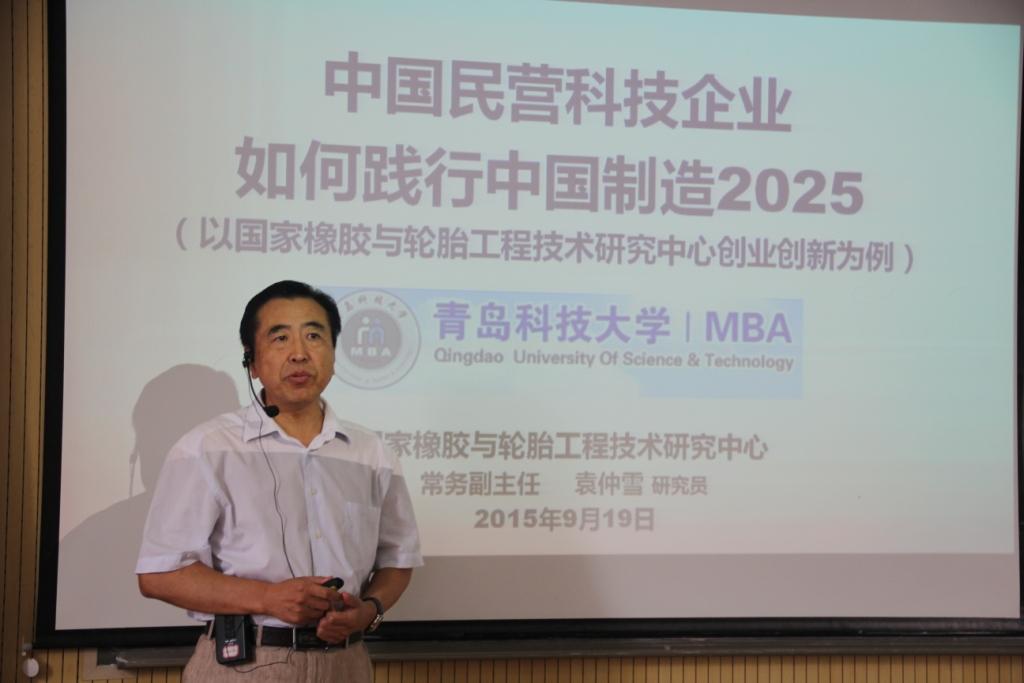 在随后的讲座中,袁仲雪以国家橡胶与轮胎工程技术研究中心为例,从创业思想与组织、创业实践与历程、管理创新三个方面阐述了中国民营科技企业如何践行中国制造2025的问题。他指出,企业应抓住时代特征,依托国家改革进行自身改革, “树文化旗帜,提精神境界”,创新股权分配制度,创造信任、创新、人本的企业氛围,谋求全产业链布局,在未来竞争中才能立于不败之地。整场讲座气氛热烈,不时响起阵阵掌声,同学们从中受益良多。