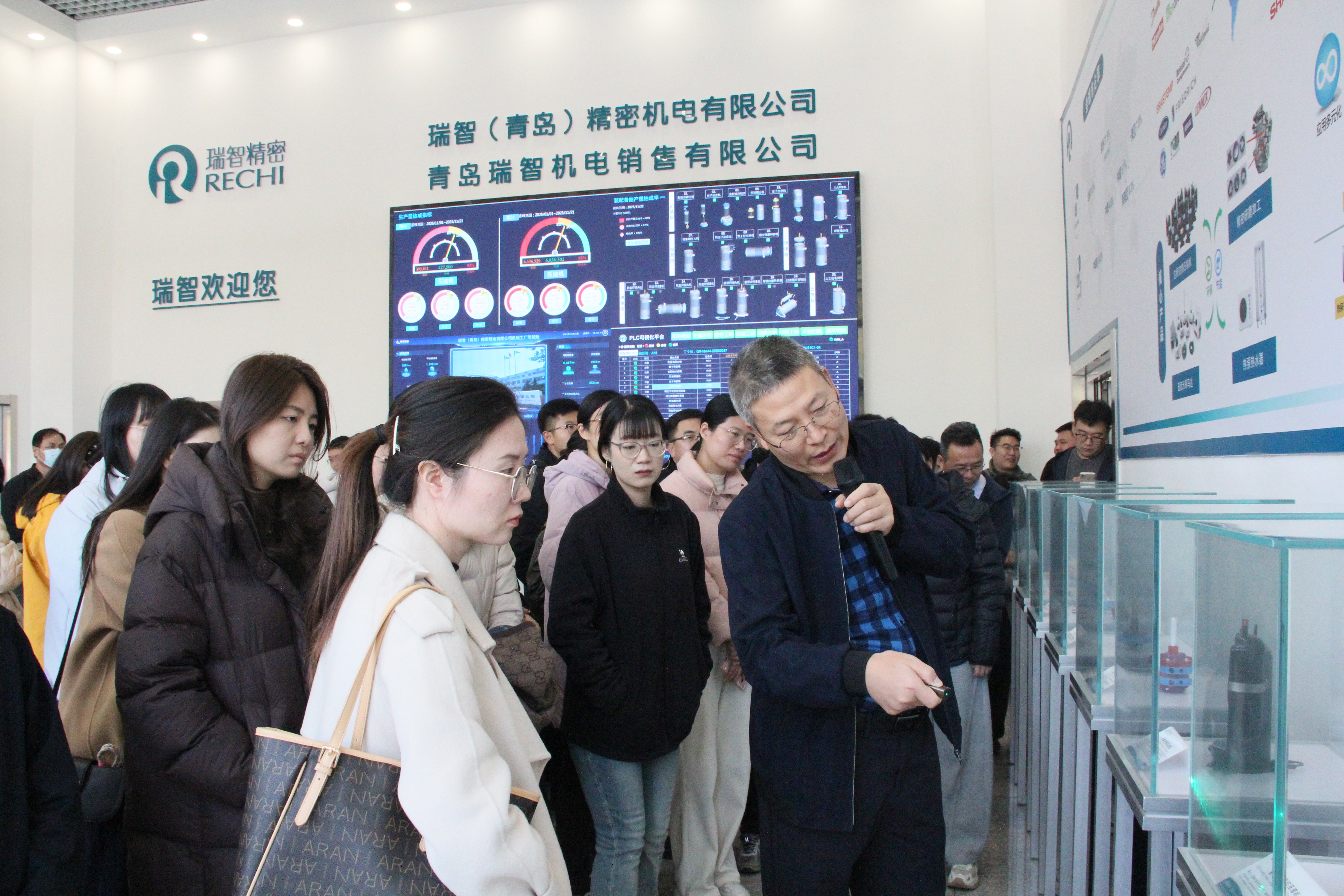下午,师生们抵达了瑞智(青岛)精密机电有限公司。瑞智是全球第四大转子压缩机企业,其产品广泛应用于空调、热泵、干衣机等领域,外销份额在国内同行业中位居第二。在2024级MBA学员、瑞智(青岛)精密机电有限公司总经理王周强的带领下,大家对压缩机生产线和研发中心进行了深入参观。