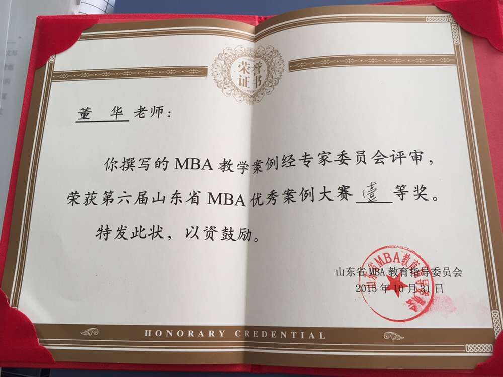 论坛还进行了山东省MBA优秀案例的评审和颁奖仪式,我校MBA董华老师所撰写案例荣获一等奖,进一步提升了MBA案例的撰写水平。