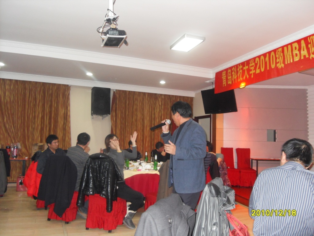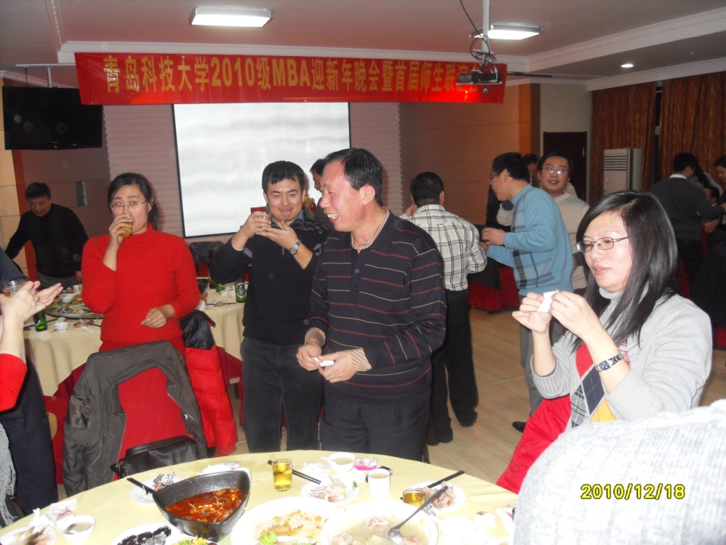 12月18日晚,“青岛科技大学首届MBA迎新年晚会暨首次师生联谊会”在杭州人家三楼宴会厅举行。MBA教育中心主任、德州扑克俱乐部