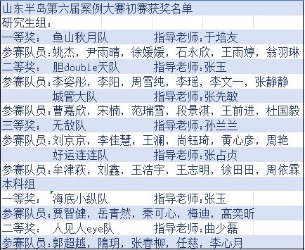 后续将按照大赛组织方分配的名额按排名确定队伍代表学校参加山东半岛第六届案例大赛复赛。
