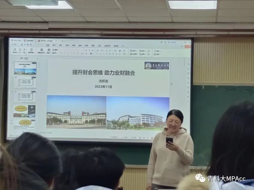 于11月23日下午,在德扑楼504会议室组织开展学术讲座,邀请了上海市松江国有资产投资经营管理集团有限公司的沈怀龙总监为2023级MPAcc师生带来《提升财会思维,助力业财融合》的报告分享。本次活动由MPAcc教育中心主任孙兰兰老师主持,2023级MPAcc同学以及其他感兴趣的同学到场聆听了此次报告。