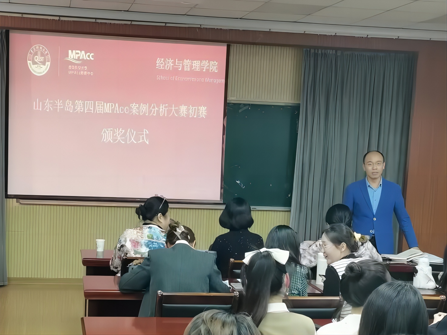 MPAcc教育中心主任于培友老师主持,会计硕士导师张先敏老师、张玉老师、孙兰兰老师参加本次活动担任评委并给获奖队伍颁奖。