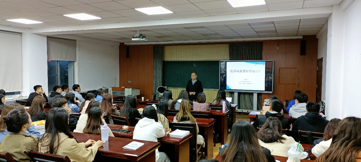 本周三晚上,2020级MPAcc主题班会在德扑楼504教室顺利举行,班会还通过腾讯会议使周末班同学同步参加。班会由MPAcc教育中心主任于培友老师主讲,本次班会的主题是“选择成就最好的自己!”