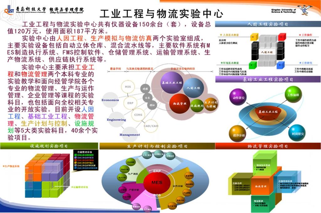 工业与物流管理系拥有物流实验中心、沙盘模拟实验室、运营模拟实验室,配套有装配工作线、3D运输仓储系统、金蝶ERP系统、生产物流与供应链系统仿真软件等先进的教学设备和实验资源;拥有京东集团、青岛港集团、海尔集团、海信集团、澳柯玛集团、赛轮集团等一批具有行业特色的校企合作实践基地,形成了集实践教学和社会实践为一体的综合化实训平台。